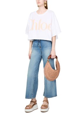 Elevate Chloé's Summer Banana bag - a stunning blend of elegance and function. Hand-carried or worn on the shoulder, this basket-style accessory features a magnetic closure, visible topstitching, and an engraved logo. Its gold finish, single compartment, thin strap, and single handle complete the modern look.