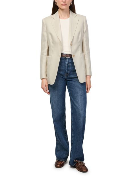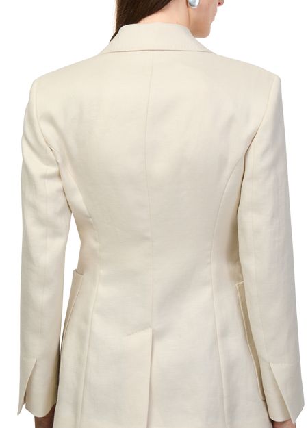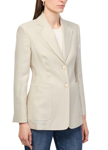 Reveal Max Mara's linen blazer, crafted in a short silhouette with a refined 2-button closure and long sleeves. Two front pockets add practical flair, while the sleek design ensures effortless transitions from day to evening. A modern essential for versatile, polished dressing.