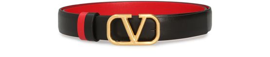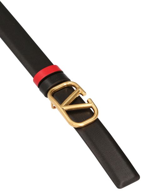 • Description : Reversible belt, satin-finish leather, gold metal jewelry, vlogo signature buckle.