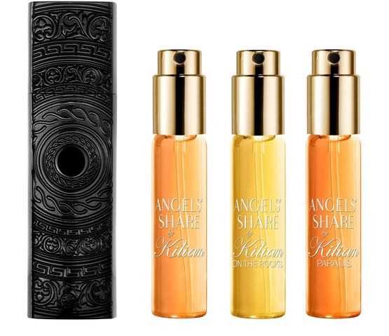 An arsenal of scents, to bring heaven to earth. One set, three ways to indulge in the Angels’ Share collection: neat, on the rocks, or gourmand-intense. Three 7.5ml refillable sprays, paired with a black Talisman perfume case, made to switch, seduce and collect.
