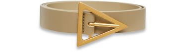 This stylish Bottega Veneta belt features gold-tone hardware and the brand's signature triangular buckle. It has an adjustable length, making it a versatile and practical accessory to complement any outfit. Crafted with precision and attention to detail, this belt is a timeless addition to any wardrobe.
