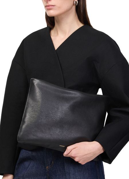 Reveal Soeur's Darleen clutch, where visible stitching and a front logo create a refined statement. The zipper closure and metal finish add a modern edge, making this clutch a versatile accessory for any occasion. Experience the perfect blend of style and functionality in every detail.
