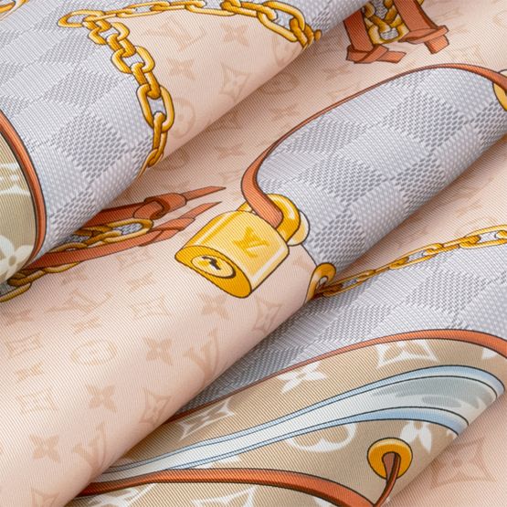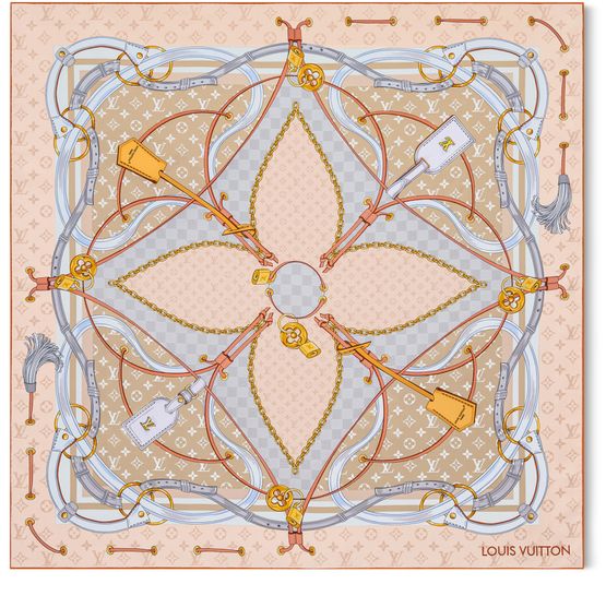 The elegant new Flower And Straps square makes a bold but refined signature statement. Screen-printed on sumptuous silk, its fresh modern design is an upbeat composition of beloved Louis Vuitton icons, featuring a Monogram Flower plus straps, padlocks and luggage tags. The background incorporates the Monogram and Damier patterns for an additional House touch.