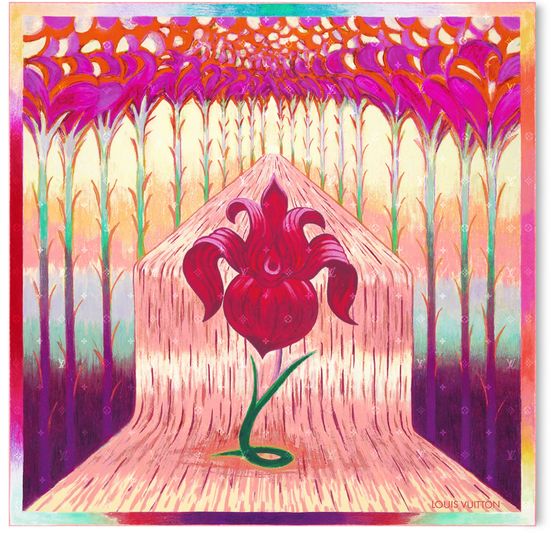 Specially created for the LV art silk squares collection, the Iris Spring silk square features the distinctive, vibrant style of the renowned Italian illustrator Lorenzo Mattoti. The centerpiece of his design is a magnificent iris, a tribute to the stained glass decorations at Louis Vuitton’s Maison d’Asnières workshop. Printed on sumptuous silk, Mattoti’s artwork achieves a harmonious blend of tradition and contemporary creative vision.