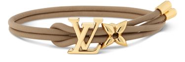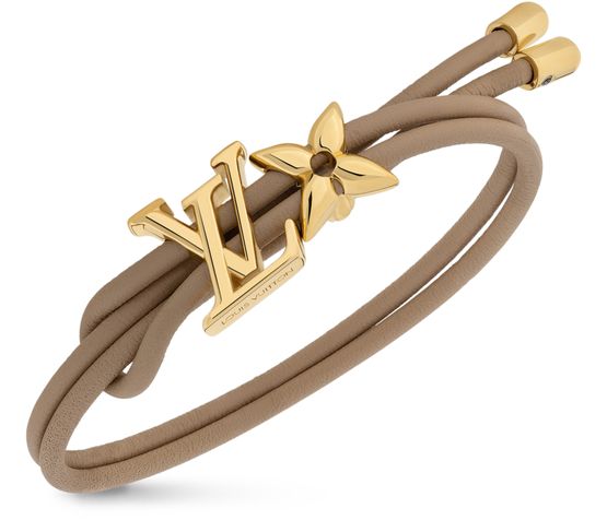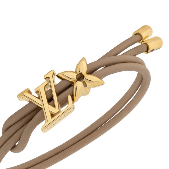 The LV Bloom bracelet combines a smooth leather strap with endearing House motifs. An LV Initials charm sits alongside a polished Monogram Flower at the front of the piece, while the double-strap design is topped off with coordinating metal. An innovative closure allows the bracelet to be adjusted for a comfortable fit.