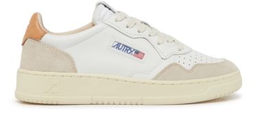 Autry's Medalist low-top sneakers showcase a sleek design with visible stitching that enhances their classic appeal. Featuring a logo on the tongue, back, and side, these sneakers offer a cohesive look. The round toe and logo-printed insole ensure comfort, making them a perfect choice for casual outings.