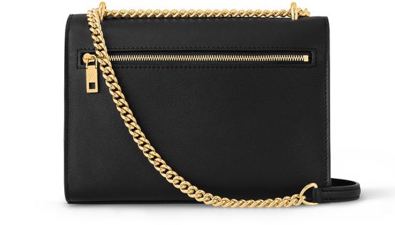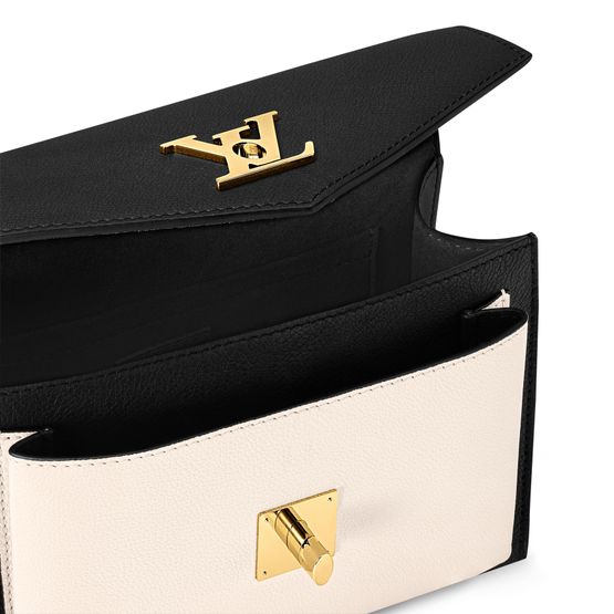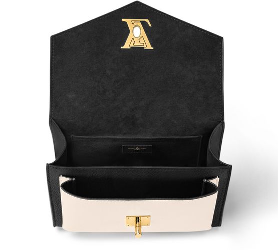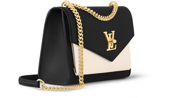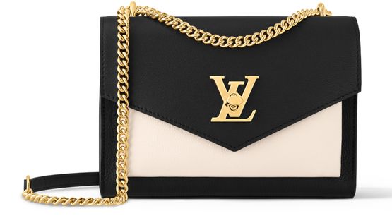 The MyLockMe Chain Bag is made from grained calf-leather in a striking two-tone colorway. With its sliding gold-color chain and gold-color LV Twist lock, this miniature “schoolbag” brings elegance to any hour of the day or night. The long chain strap can be adjusted for short-shoulder carry or worn cross-body.