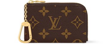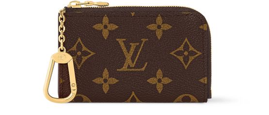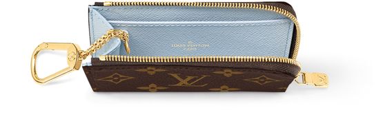 The Noa key holder is an elegant and practical accessory in Louis Vuitton's signature Monogram canvas. Its L-shaped zip opens to reveal a pastel-colored leather lining and a gold-tone hook and chain. An inside flat pocket is ideal for tickets or receipts.