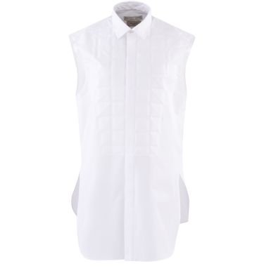 A creation that will enhance your look! This Bottega Veneta shirt dress shows off the brand's bold craftsmanship. The many details, such as the padded bib and a raised check pattern, add a touch of sophistication. The shoulders are slightly overlaid, creating a very refined visual effect with the straight cut. This shirt dress has a sophisticated look, worn with long trousers from the Bottega...