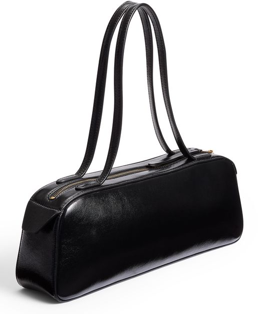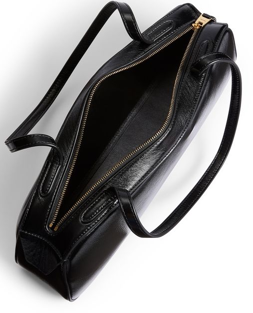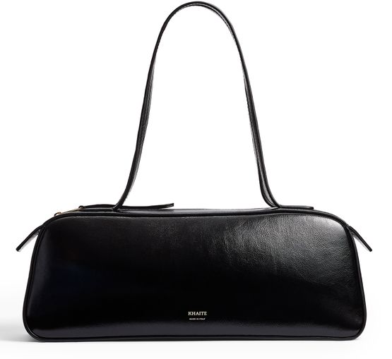Discover Khaite's Simona bag, a striking piece crafted from smooth calf leather. This shoulder bag boasts double handles and a single compartment, secured with a sleek zipper closure. Visible topstitching enhances its refined aesthetic, making it a perfect blend of elegance and practicality.