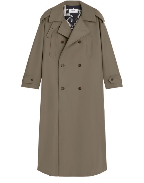 Discover the wool and cotton trench, printed scarves by Celine, a captivating piece with a fluid cut and a collar with throat latch. This design includes 2 raglan pockets, shoulder tabs, sleeve tabs, side slits, and 8 horn buttons engraved Celine Paris, including on shoulder tabs, sleeve tabs and throat latch.