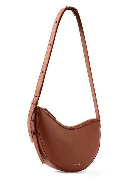 Reveal Soeur's Wino mini hobo bag, crafted from smooth leather with a single handle for effortless style. The gold-lettered front logo and visible stitching highlight refined details, while a secure zipper closure and single compartment offer practical sophistication for modern essentials.