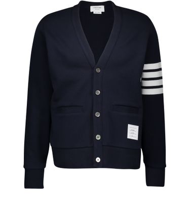 This gilet cardigan brings a touch of elegance, all while keeping you warm as the weather gets cooler. Thom Brown has also designed this cardigan in an authentic style. With a V-neck and discreet buttonhole, this piece serves as a showcase for the different signatures of the designer, who customises his pieces with four graphic lines and an embroidered badge.