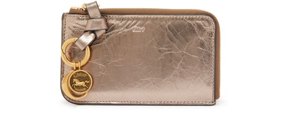 Chloé's Alphabet card holders showcase a sleek design with a convenient zipper closure, ensuring your essentials are secure. The engraved logo adds a touch of elegance, while the front logo enhances its charm. Visible topstitching highlights the craftsmanship, making it a perfect accessory for those who appreciate refined style.