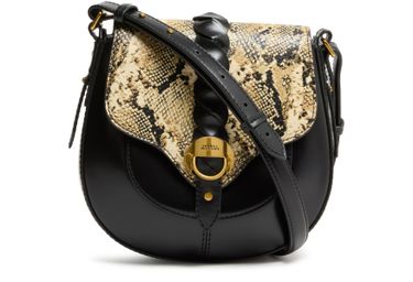 Reveal Isabel Marant's Altay small crossbody bag, crafted from smooth leather with a captivating snakeskin pattern. This hobo bag features a thin, adjustable strap for versatile wear and a magnetic closure for security. The visible topstitching and gold finish add a touch of refined elegance.