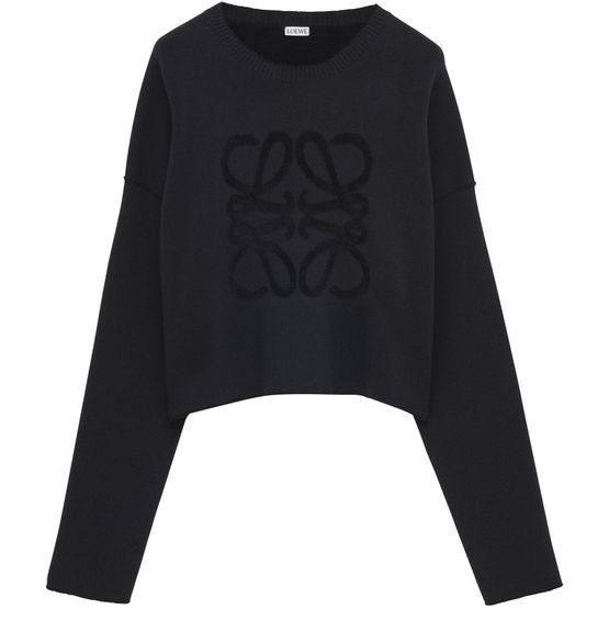 Reveal Loewe's Anagram sweater in wool blend, a cropped silhouette crafted from warm fabric. The round neck and long sleeves offer timeless appeal, while the front logo adds a signature touch. Perfect for layering or standalone wear, this sweatshirt elevates any modern wardrobe.