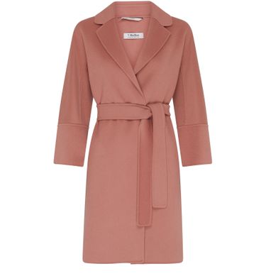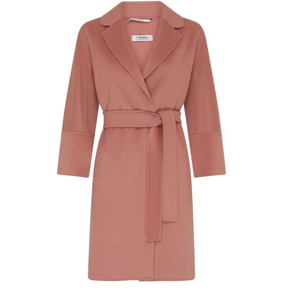S Max Mara's Arona belted coat showcases a sophisticated silhouette with a notched collar and a stylish belt that cinches the waist. Its short, long-sleeved design combines elegance and practicality, making it perfect for transitional seasons. Embrace timeless fashion while staying warm and chic in this exquisite piece.