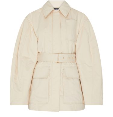 Jacquemus's Bari jacket showcases a short, long-sleeved silhouette with a concealed closure for a sleek finish. Flap pockets and patch pockets add practicality, while the breast pocket offers a stylish touch. The collar frames the face perfectly, and the appliquéd logo and logo at the back label elevate its chic appeal.