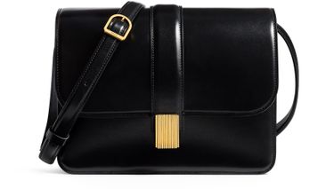 Reveal Khaite's Blake crossbody, crafted from smooth leather with a refined gold clasp and gold finish. The adjustable thin strap ensures versatile wear, while visible stitching highlights the impeccable craftsmanship. This piece seamlessly blends modern sophistication with practical elegance for everyday style.