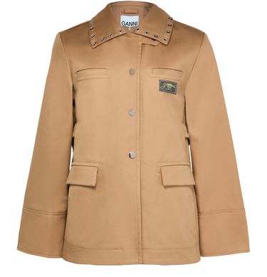 Ganni's Bonded cotton jacket offers a modern silhouette with a sleek, structured fit. Its innovative bonded fabric ensures durability while providing a soft, comfortable feel. With thoughtful details and a versatile design, this jacket effortlessly transitions from day to night, making it a staple for the contemporary wardrobe.