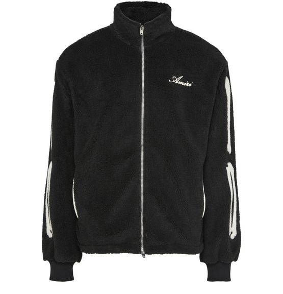 Amiri's Bones fleece jacket showcases a short, long-sleeved silhouette with a high neck for added warmth. Its zipper closure allows for effortless wear, while the embroidered chest logo adds a touch of style. With convenient side pockets, this casual jacket is perfect for laid-back outings or chilly evenings.
