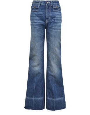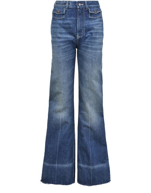 Chloé's Bootcut jeans offer a stylish blend of comfort and sophistication. With a high-waisted fit, they feature a buttoned and concealed zipper closure, belt loops, and visible stitching. The ankle-length design includes two front pockets and flap pockets, making them perfect for any occasion while ensuring a flattering bootcut silhouette.