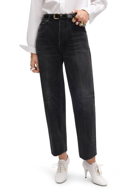 • Description : Mid-rise, straight leg, 5 pockets, rivets on the front pockets, celine paris triomphe patch at the back on the waistband, celine jeans-engraved buttons.