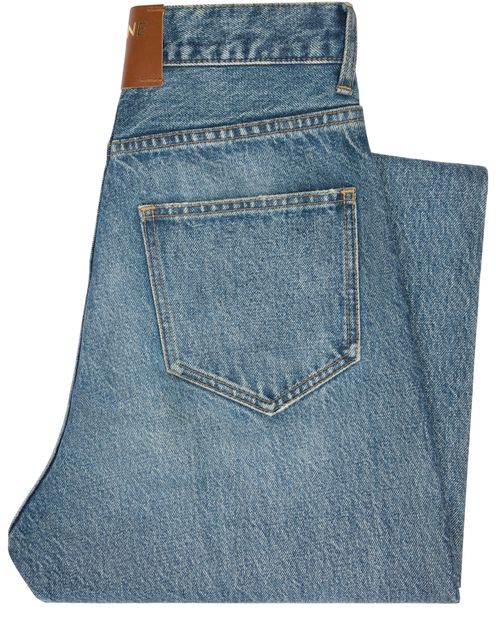Description : Mid-rise, straight leg, 5 pockets, rivets on the front pockets, celine paris triomphe patch at the back on the waistband, celine jeans-engraved buttons.