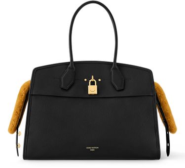A statement piece on the RTW Fall-Winter 2024 runway, this City Steamer Soft GM is oiginally inspired by luggage designed for cruise ships in 1901. This seasonal edition is crafted from grained Millesime leather with shearling side trims and features new details including a ridged padlock and hot-stamped LV circle. Use the removable Monogram pouch to store valuables.