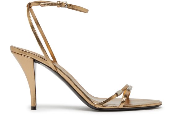 The Row's Cleo Bijoux sandals showcase a stunning stiletto heel that elevates any outfit. With a chic buckled ankle strap, these high-heeled sandals offer both style and support. The sleek design and silver finish create a sophisticated look, perfect for transitioning from day to night in effortless elegance.