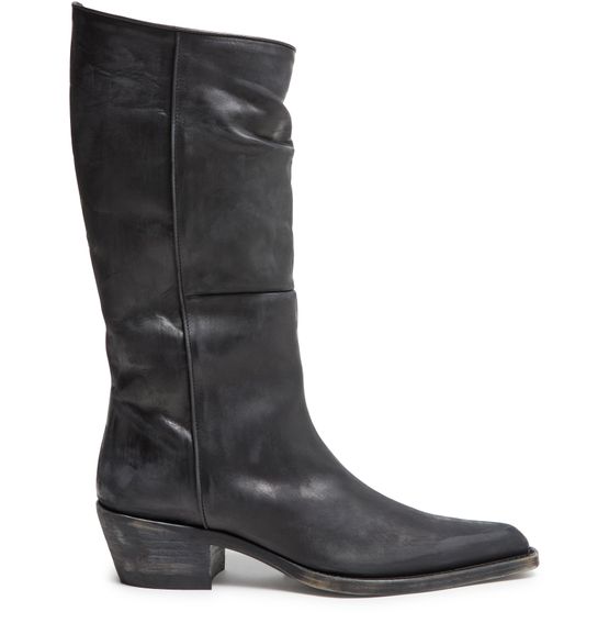 Reveal Khaite's Clive boots, crafted from smooth leather with a pointed closed toe and a low block heel. Visible stitching and an engraved logo add refined detail, while the leather outer sole and interior ensure comfort and durability. A modern take on classic western boots.