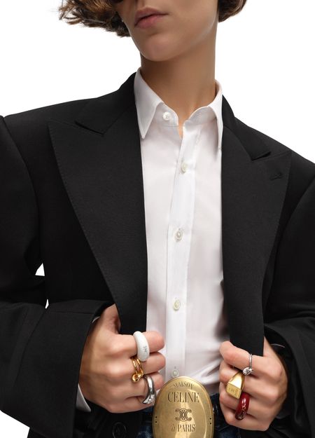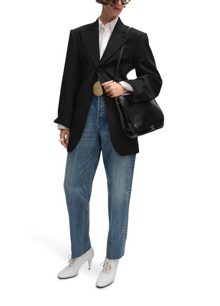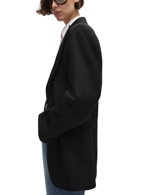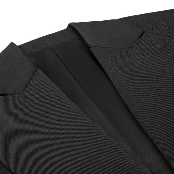 Description : Tailored with front panel and shoulder pads, peak collar, 1 chest pocket, 2 flap pockets, interior pockets, middle back vent, 3 horn buttons, 1 horn button on the cuffs, made in italy.