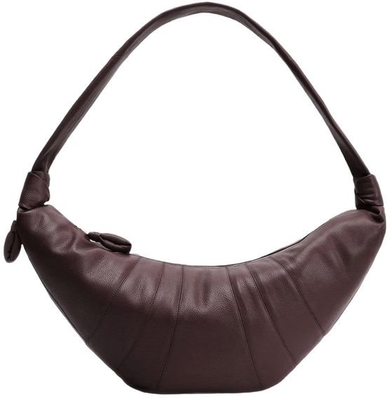 Reveal Lemaire's croissant large bag, crafted from grained leather with a single handle for effortless carrying. The visible stitching and zipper closure highlight refined craftsmanship, while the hobo silhouette offers a modern twist on a classic shoulder bag—perfect for elevating your everyday style.