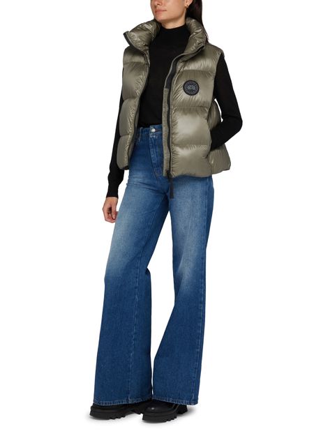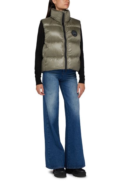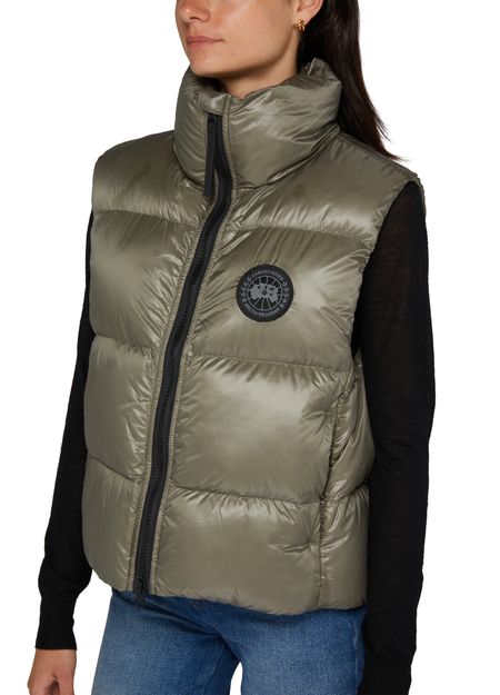 Canada Goose's Cypress cropped down jacket showcases a sleeveless, short design with a high neck for added warmth. The zipper closure ensures a snug fit, while the chest logo adds a touch of sophistication. Perfect as a puffer jacket or vest, it’s ideal for layering on chilly days.