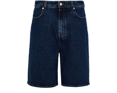 Loulou de Saison's Denim shorts Isu offer a stylish knee-length silhouette, perfect for casual outings. The front buttoned closure complements the five-pocket style, while the appliquéd logo adds a unique touch. A patch detail at the back enhances the design, making these shorts a must-have for effortless summer chic.
