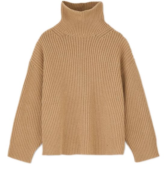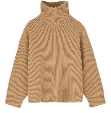 Reveal Skall Studio's Diana turtleneck sweater, crafted in ribbed fabric for a refined texture. The long, dropped sleeves and rollneck silhouette offer a modern edge, while its elongated cut ensures versatile styling for any occasion. Pair effortlessly with tailored pants or relaxed denim.