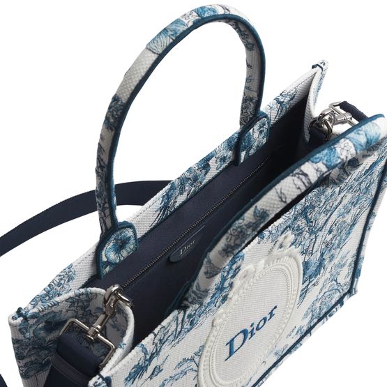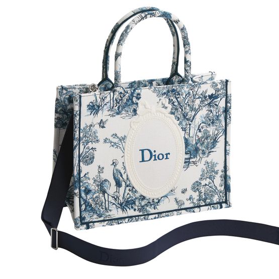 Celebrate Dior's Medium Dior Book Tote with Strap, a remarkable fusion of elegance and functionality. Featuring the iconic Dior Médaillon signature on the front, this tote boasts top handles and an adjustable, removable Dior signature shoulder strap. Inside, find a practical interior zip pocket and two slip pockets for effortless organization.
