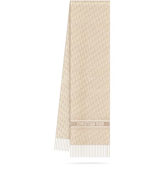 • Description : Gold-tone Dior Oblique Natte motif, contrasting jacquard band with Christian Dior signature, hand-tied fringe at the ends, woven with metallic thread.