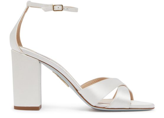 Step into elegance with Aquazzura's Divine sandals 85. These high heels feature a chic ankle strap and a stylish block heel, ensuring comfort and sophistication. The open round toe reveals a hint of allure, while the appliquéd logo and visible stitching add a touch of artistry to every step.
