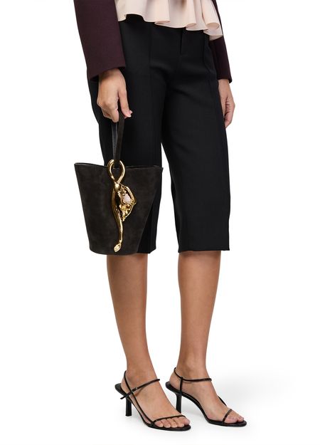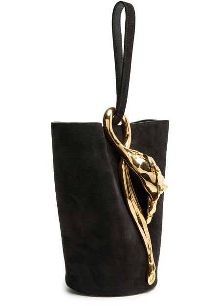 Reveal Chloe's Eden Treasures bucket bag, crafted with a single handle and thin strap for versatile wear. Gold finish accents and visible topstitching highlight the refined leather lining, while the signature silhouette offers a modern take on everyday sophistication.