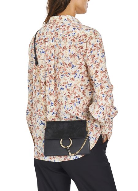 This Faye mini chain bag has an elegant line. Designer Chloé adds a sophisticated touch with a metal clasp on the front, making this accessory a wardrobe must-have.