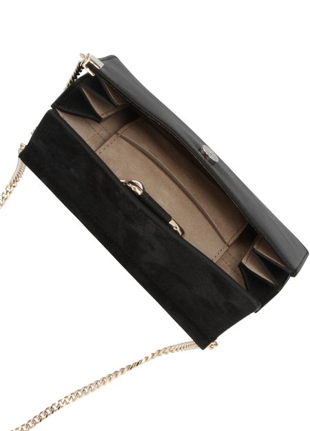 Description : Mini bag, detachable chain, dual-material, suede leather, flap closure, magnetic closure, worn on the shoulder or crossbody.