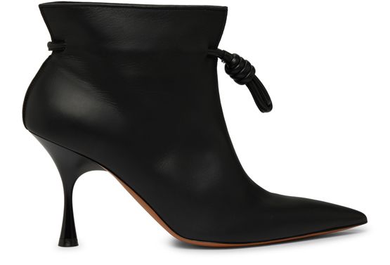 The elegant, feminine Flamenco ankle boots feature a very slim leather structure that ends in drawstrings. Signed by Loewe, this design is inspired by the brand's famous clutch bag.