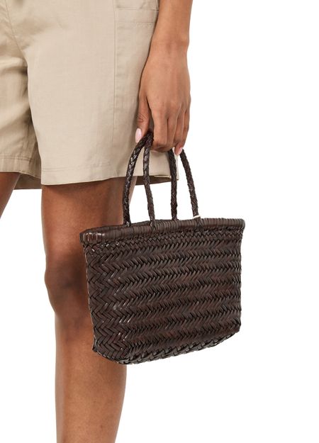 Discover Dragon Diffusion's Flat Gora mini handbag—a medium bag designed for versatility. Wear it in hand or on the shoulder, featuring a spacious interior compartment. Experience artisanal craftsmanship that ensures each basket's size and details are unique.