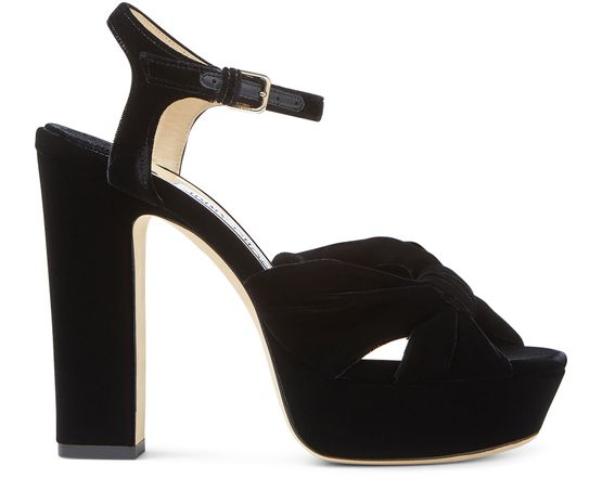Elevate your outfit with Jimmy Choo's Heloise 120 velvet sandals. These stunning pumps feature a platform design with a square heel, open round toe, and a stylish buckled ankle strap for a secure fit. Perfect for adding a touch of luxury to any ensemble, these sandals are a must-have for any fashion-forward wardrobe.