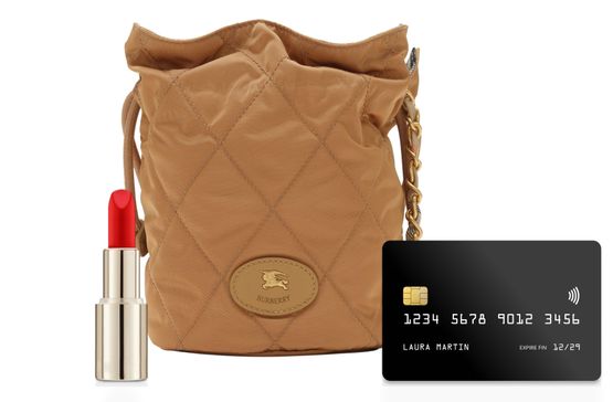 Reveal Burberry's small bucket bag, a statement piece defined by its chevron pattern and gold finish. The chain strap and drawstring closure add modern flair, while the Knight Design equestrian emblem and front logo showcase signature craftsmanship. Visible topstitching and padded texture complete this refined silhouette.