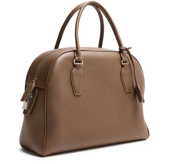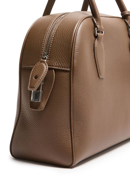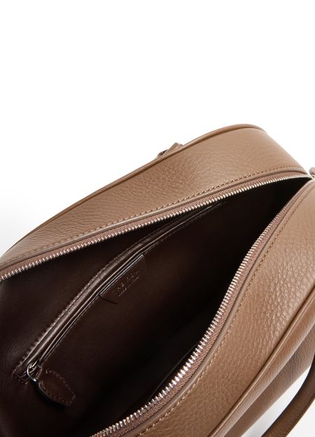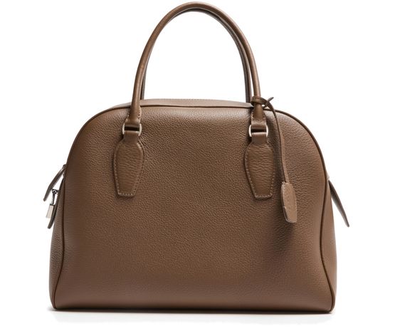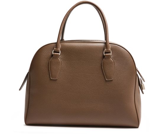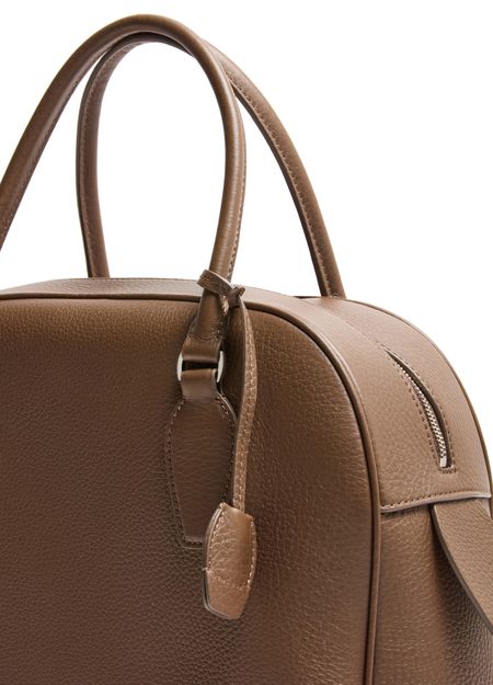 Reveal The Row's India 12 handbag, crafted from grained leather for a refined touch. Double handles and a zippered closure offer both style and security, while visible stitching and a spacious interior with a zippered pocket ensure practical elegance for everyday sophistication.