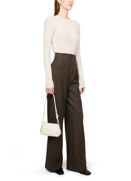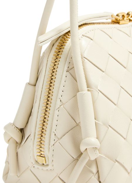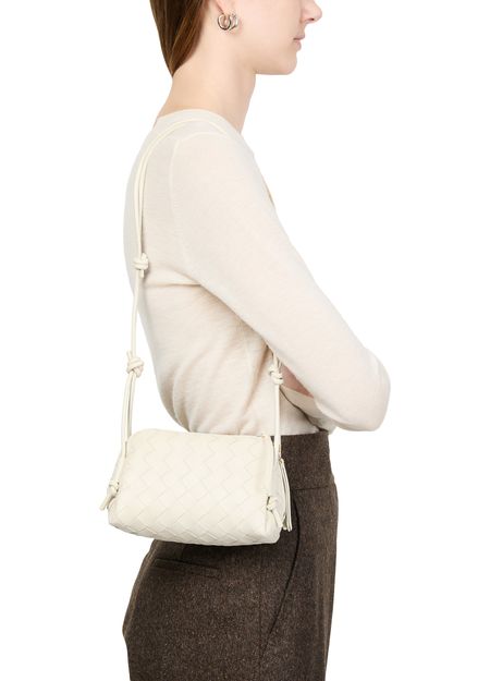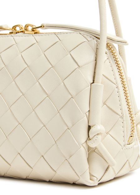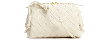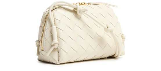 • Description : Mini bag, crossbody bag, toiletries bag / cosmetics pouch, intrecciato weaving technique, iconic bow clasp, thin strap, adjustable strap, embossed logo, smooth leather, zipper closure.