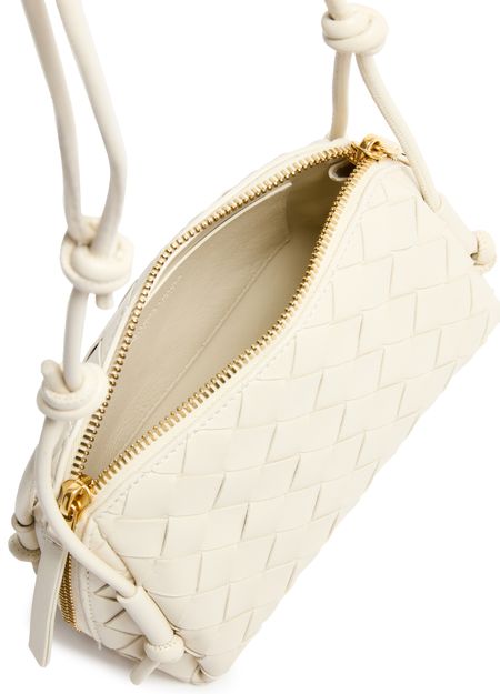 Unveil Bottega Veneta's Intrecciato Concert Pouch, a masterpiece of smooth leather craftsmanship. This mini bag features the iconic Intrecciato weaving technique and an embossed logo, offering a blend of elegance and functionality. With its adjustable thin strap and zipper closure, it ensures both style and practicality.