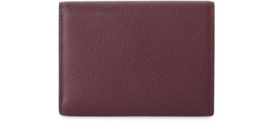 Reveal Valextra's Iside 3 CC folding wallet, crafted from grained leather with a refined gold clasp. The thoughtfully designed interior features card slots, a zippered pocket, and patch pockets, all finished with visible stitching and gold accents for a sophisticated, modern touch.